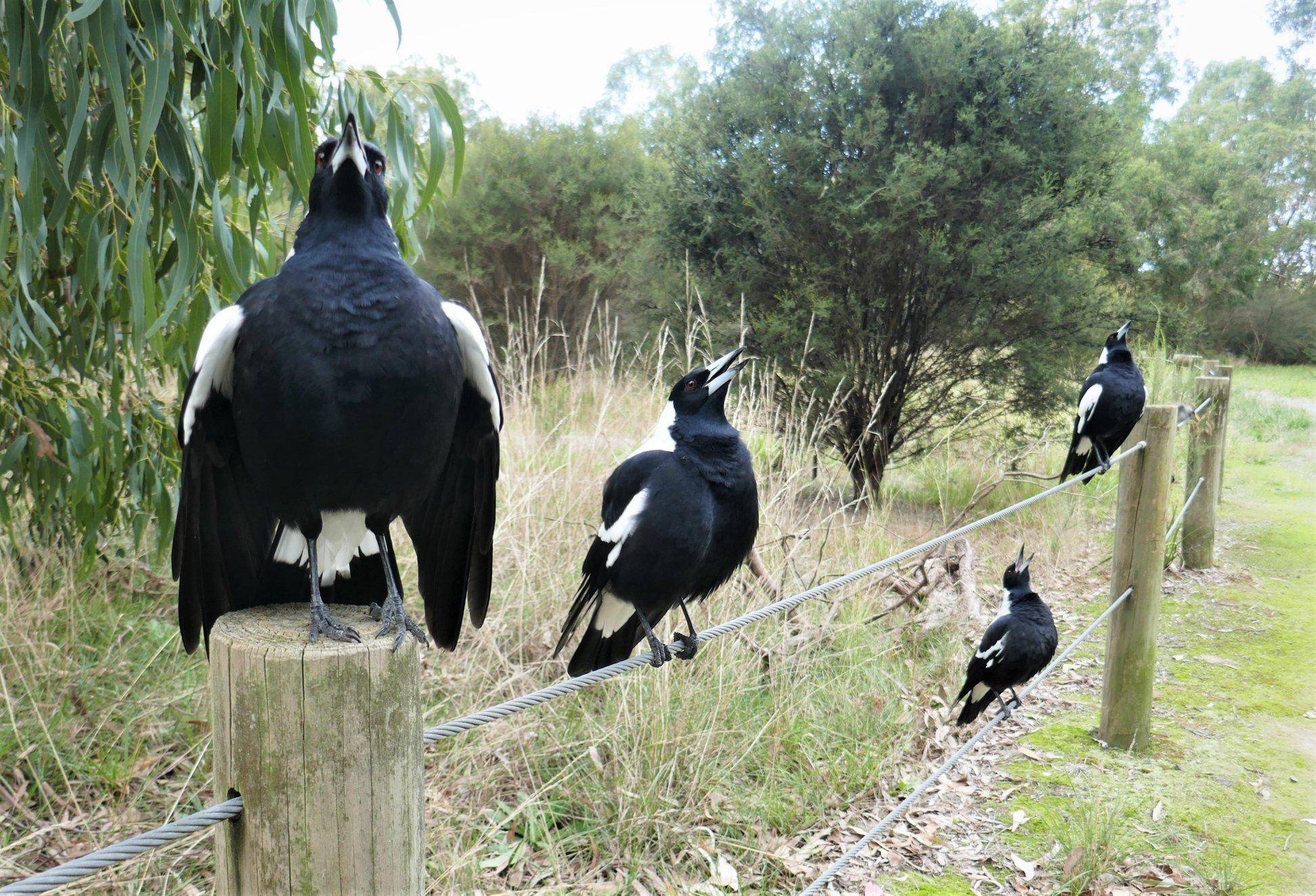 Australian magpies. I call a group of them a warble because that's what they sound like! 🎵 🎶 🎵
